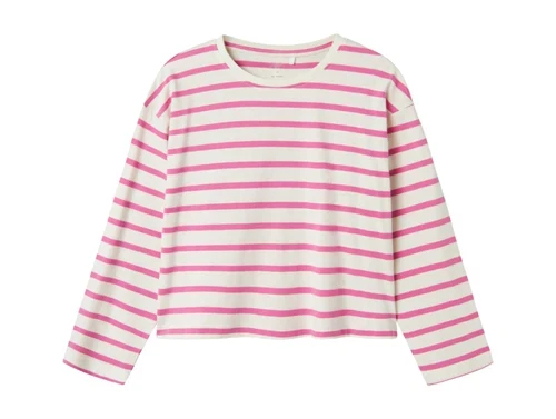 Blød stribet bluse i farverne phlox pink og jet stream fra Name It.