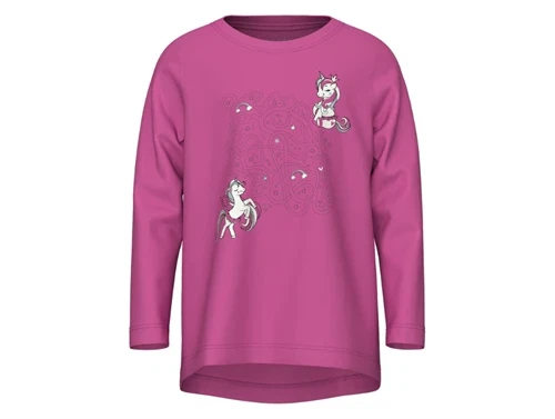 Langærmet top i farven phlox pink med enhjørning print fra Name It.