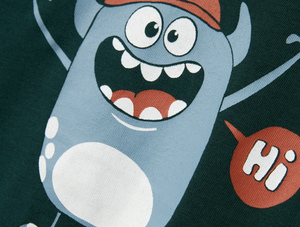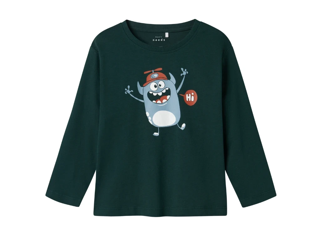 Langærmet top i farven pine grove med monsterprint fra Name It.
