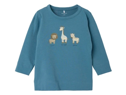 Top/t-shirt i farven provincial blue med dyreprint fra Name It.