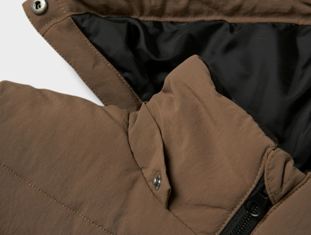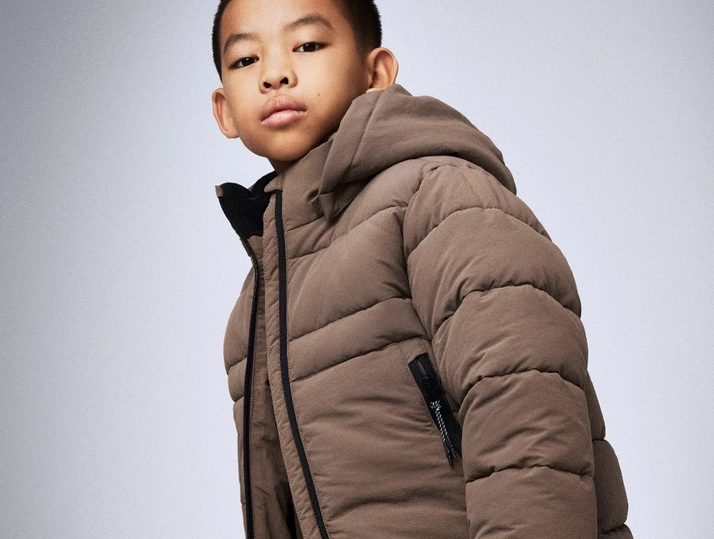 Yderlaget er fremstillet i 100% nylon (genanvendt) med let polstring, som giver god varme. Den aftagelige hætte øger sikkerheden, og de elastiske ribkanter ved ærmerne gør jakken praktisk til daglig brug i overgangs- og vintermånederne.