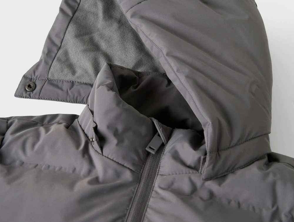Jakken har almindelig pasform, aftagelig hætte og let, varm polstring, der gør den oplagt til vinterens kolde dage.
