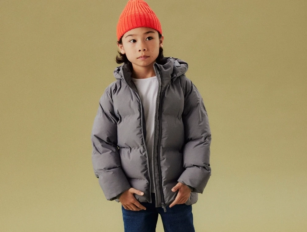 Ydermaterialet er fremstillet i 100% polyester (genanvendt) med polstring, som holder barnet varmt uden at blive tung. Den aftagelige hætte giver ekstra sikkerhed i hverdagen.