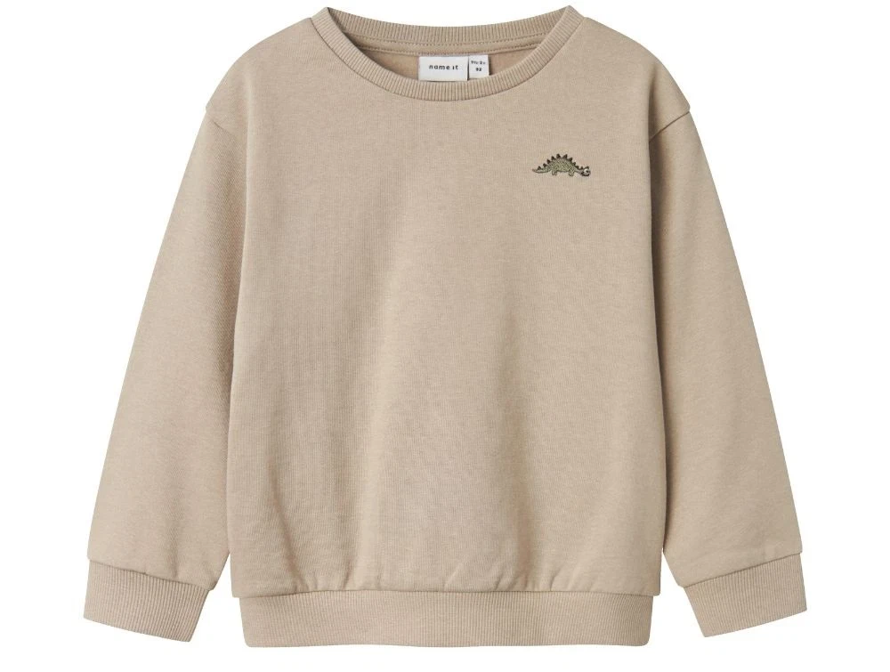 Sweatshirt i farven pure cashmere med lille dino-broderi fra Name It.