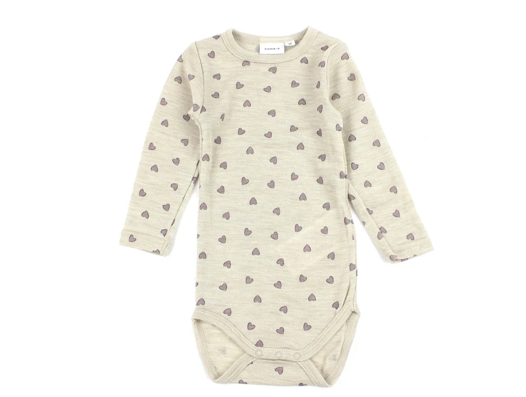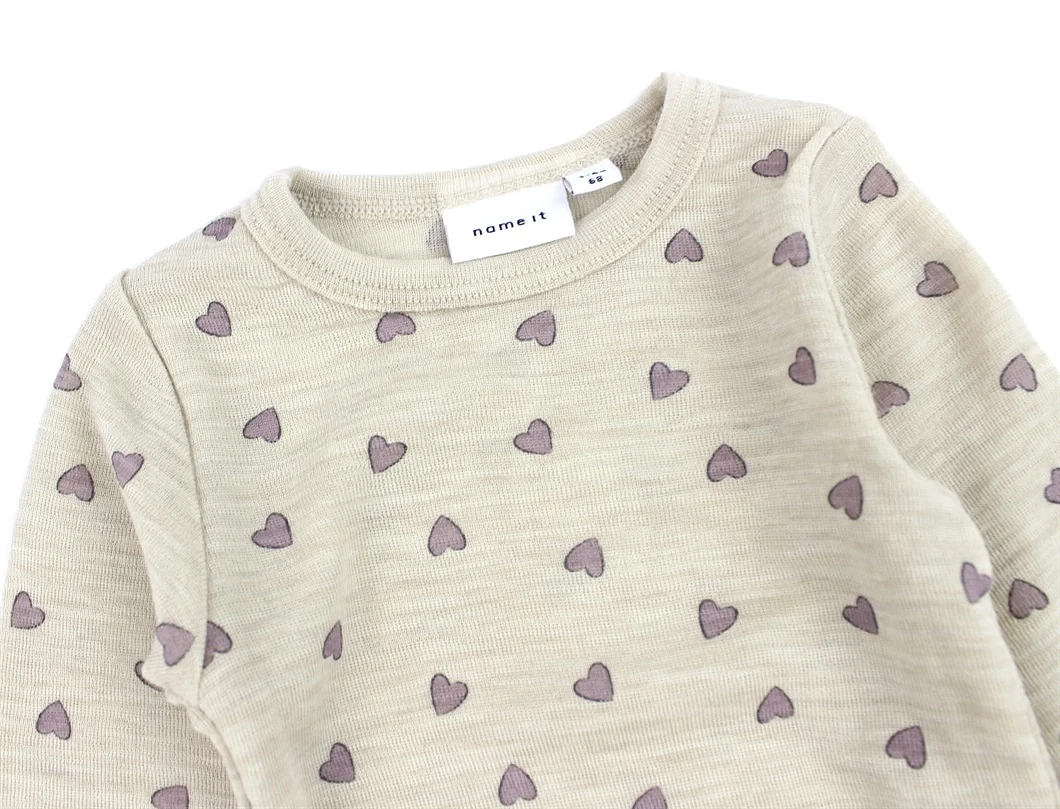 Body i blød merinould i farven pure cashmere med hjerteprint fra Name It.
