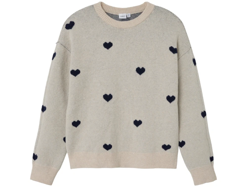 Cool striktrøje i farven pure cashmere med hjerter fra Name It.