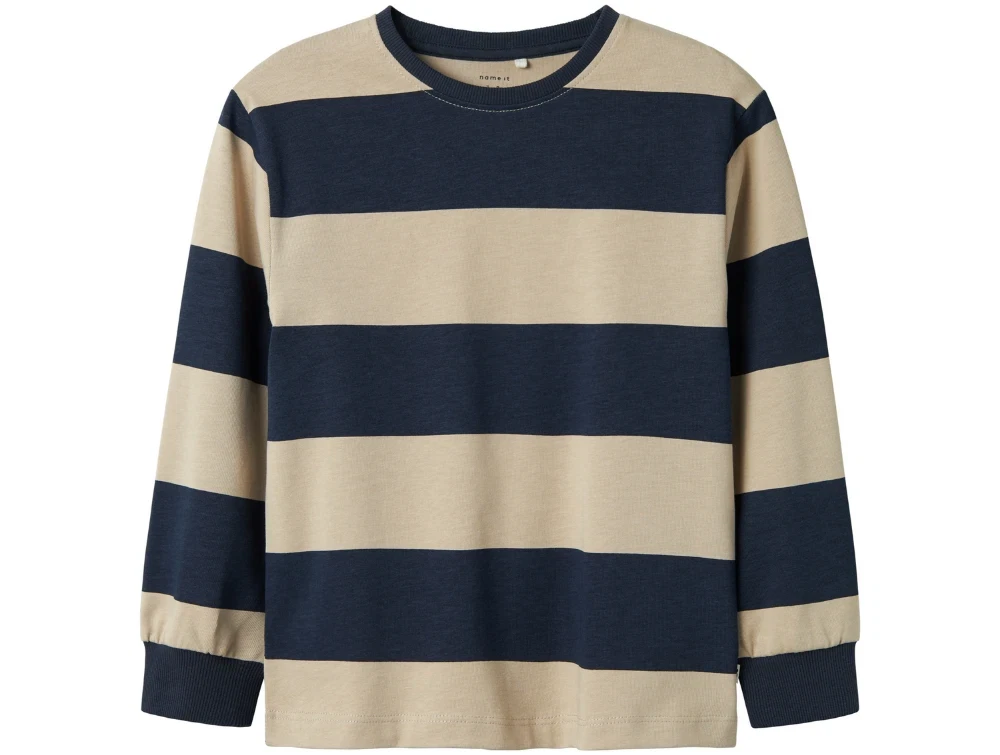 Klassisk langærmet heavy jersey t-shirt med striber i farverne navy blazer og pure cashmere fra Name It.