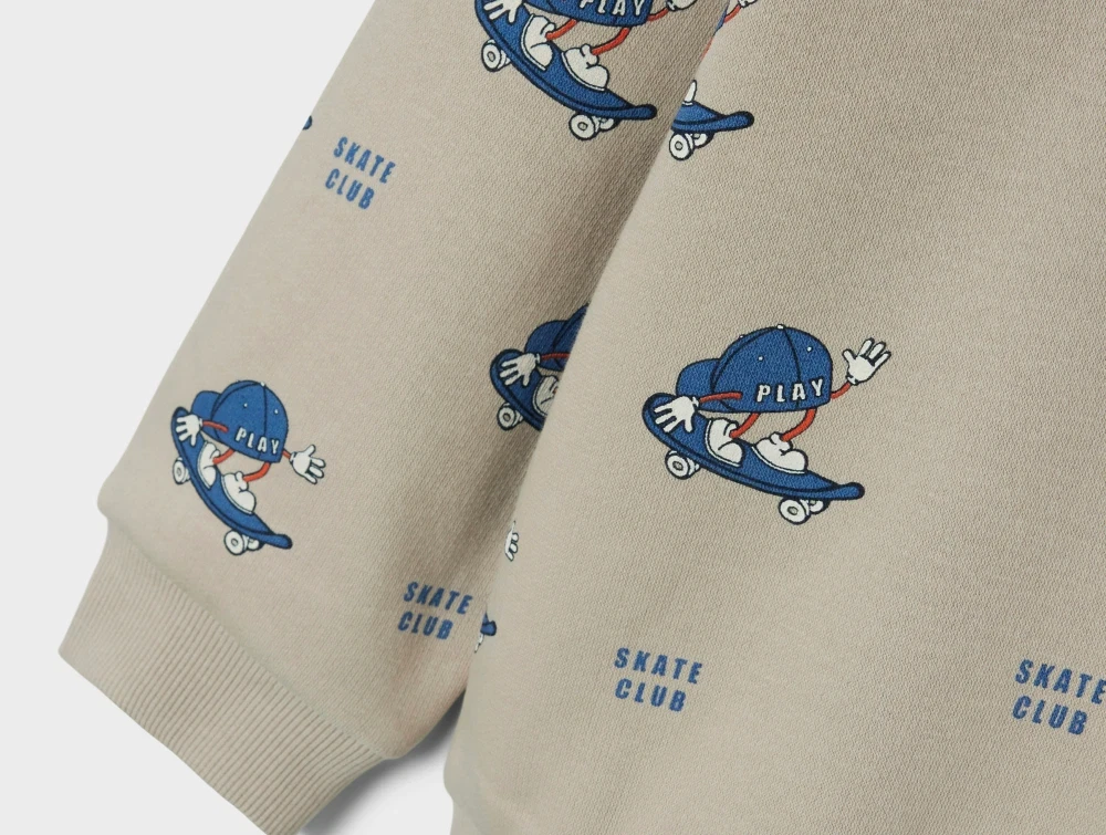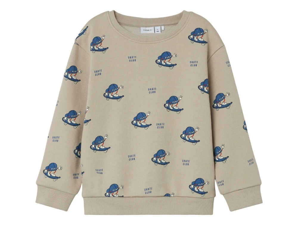 Sweatbluse i farven pure cashmere med skate tema fra Name It.