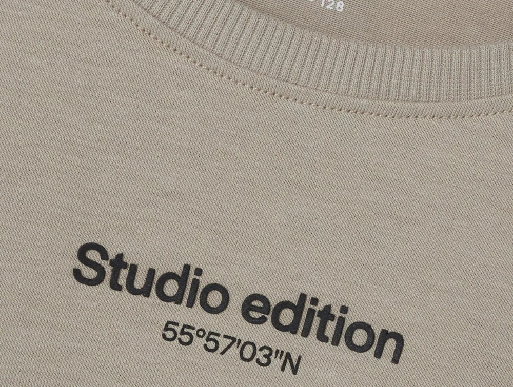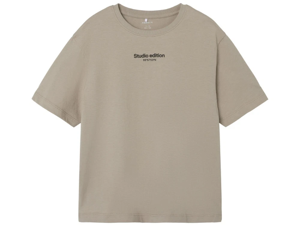T-shirt i farven pure cashmere med lille Studio Edition-tekstprint fra Name It.