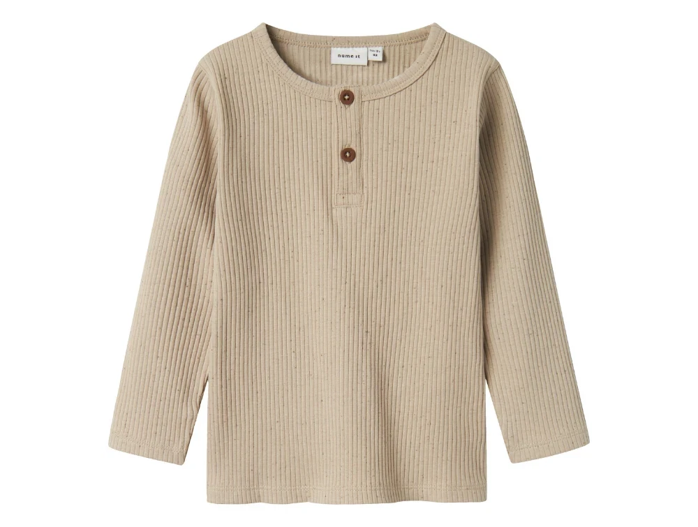 Langærmet top i farven pure cashmere med to knapper fra Name It.