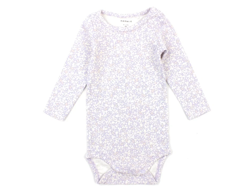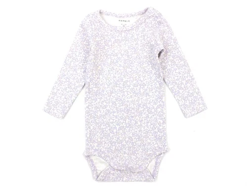 Langærmet body i farven purple heather med blomsterprint fra Name It.