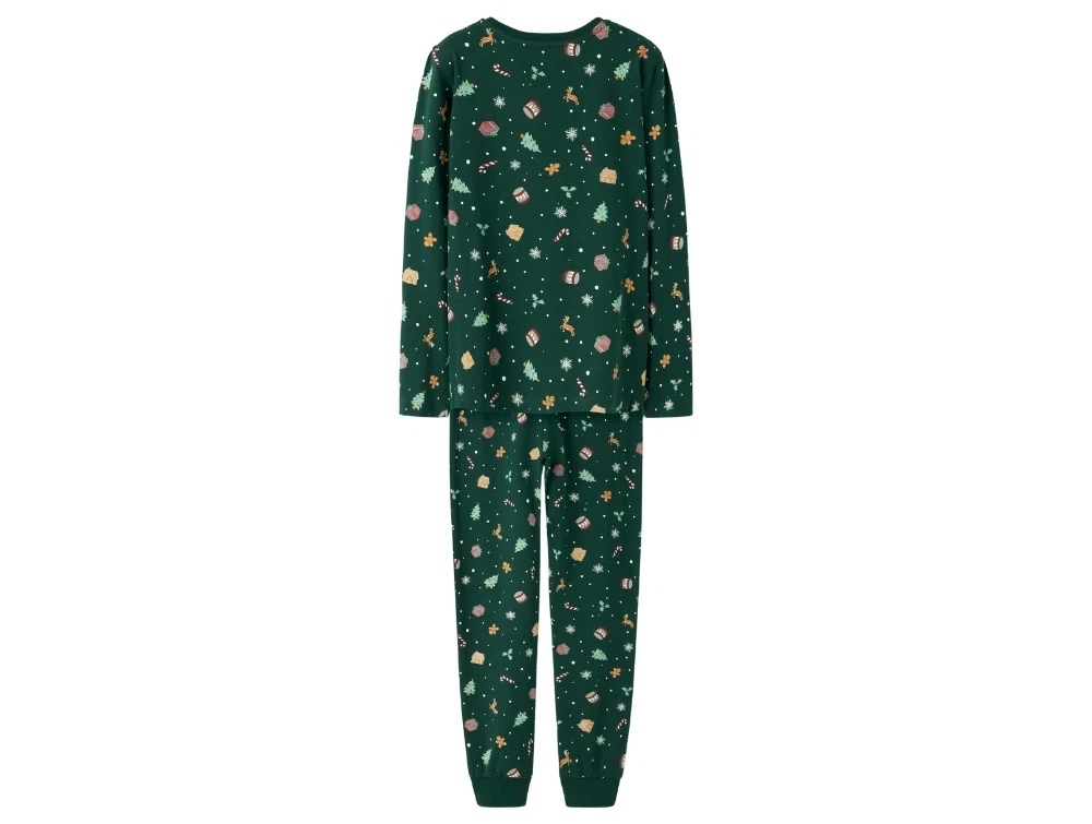 Pyjamas i mørkegrøn nuance (botanical garden) med juleprint fra Name It.