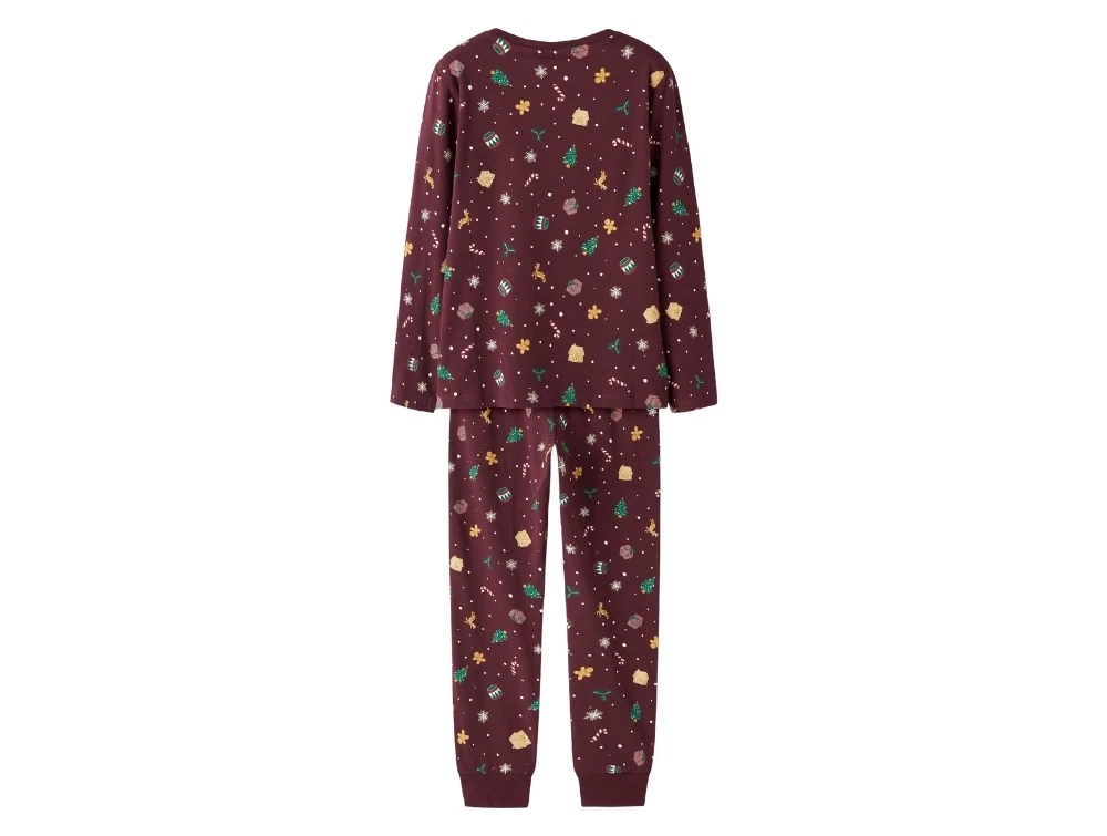 Pyjamas i bordeaux rød nuance (burgundy) med juleprint fra Name It.