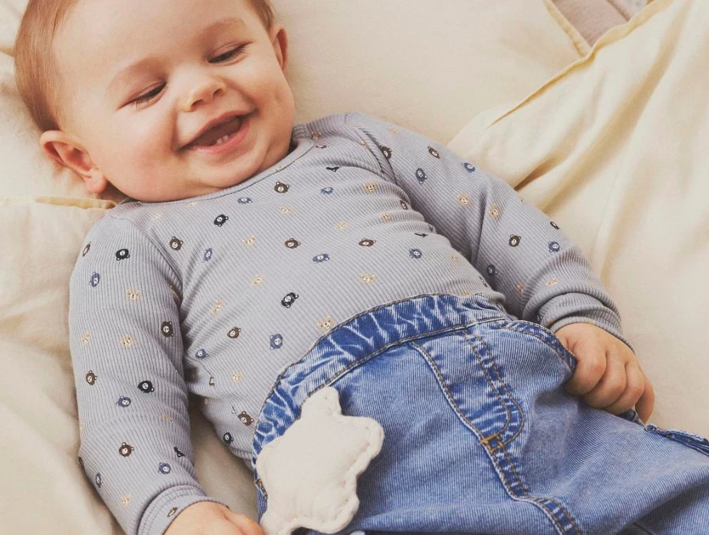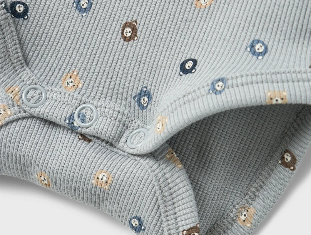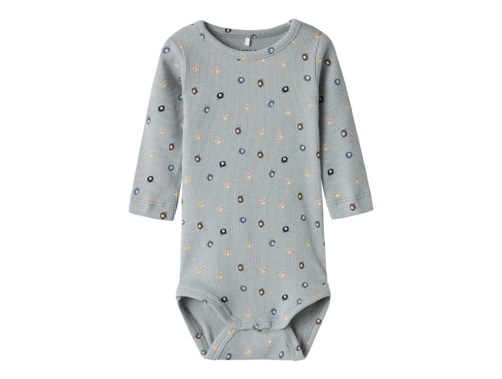 Klassisk rib-body i farven quarry med print af små bamser fra Name It.