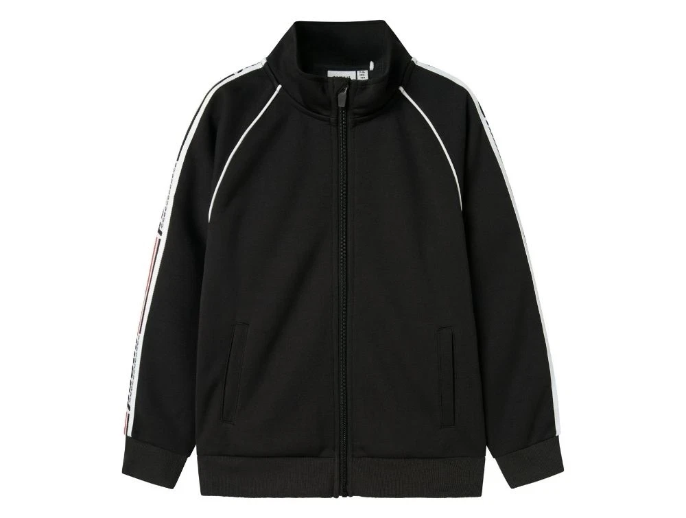 Dreng klædt i sort sweatcardigan med høj krave og lynlås fra Name It 13242669 blackSort sweatcardigan med høj krave, hvid detaljer og lynlås fra Name It 13242669 blackSort sweatcardigan med høj krave, hvide kontrastdetaljer og lynlås fra Name It 13242669 blackSort sweatcardigan med rib kanter og hvidt bånd med striber og tekst på ærmerne fra Name It 13242669 blackDreng klædt i sort sweatcardigan hvide kontrastfaret bånd med speed-detaljer fra Name It 13242669 black