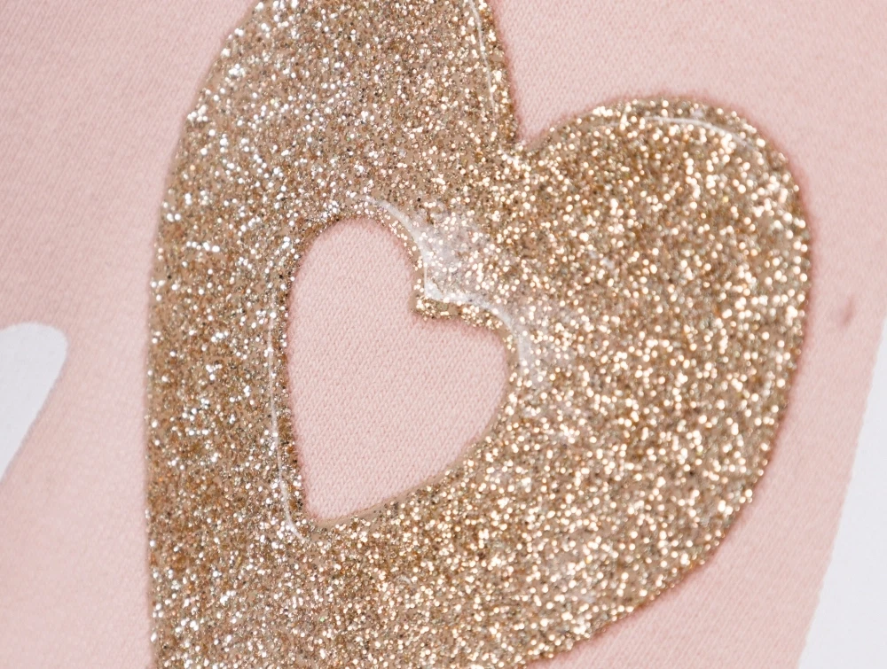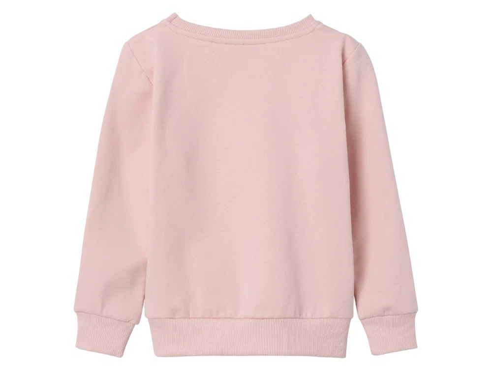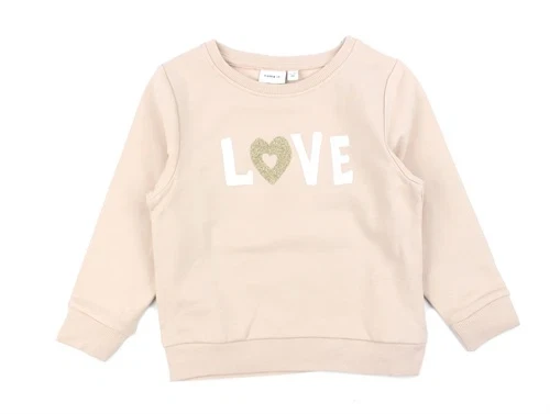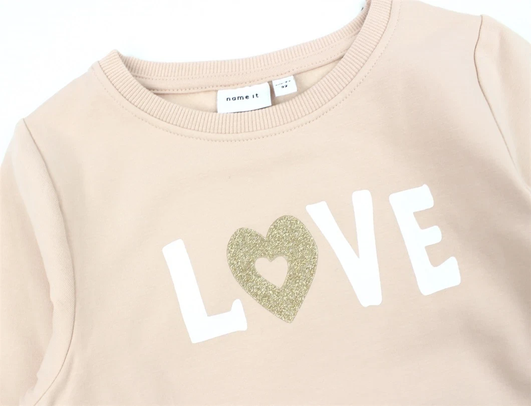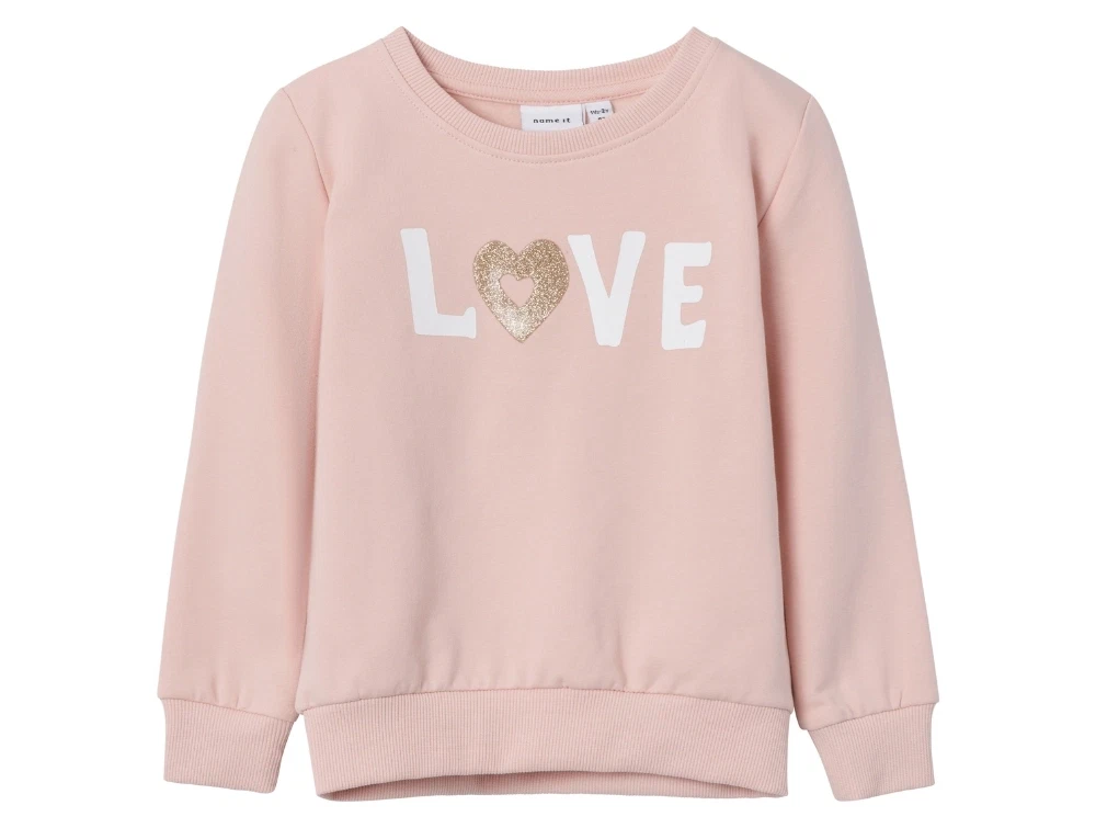 Sweatshirt i farven rose smoke med glitterhjerte og tekstprint fra Name It.