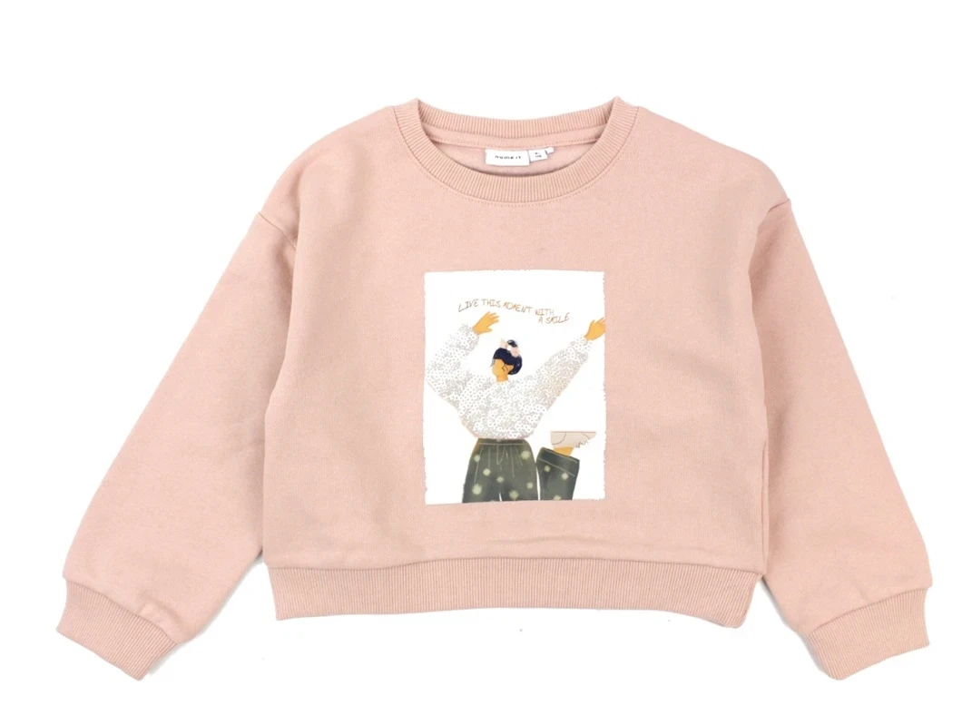 Kort sweatshirt i farven rose smoke med print og palietter fra Name It.