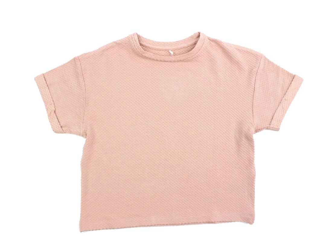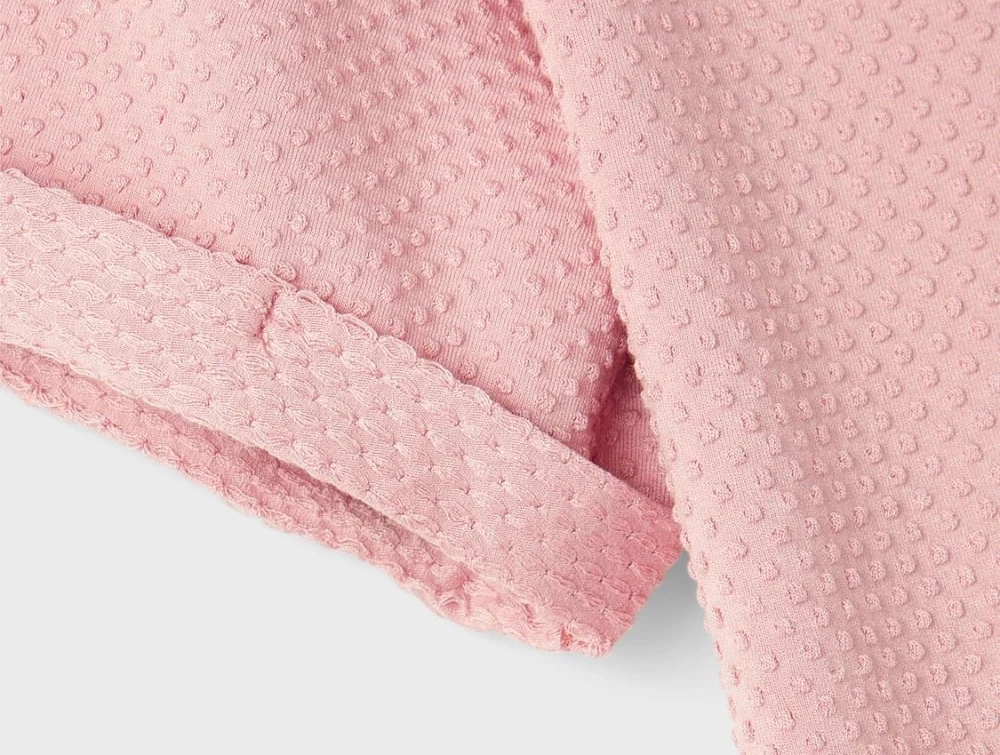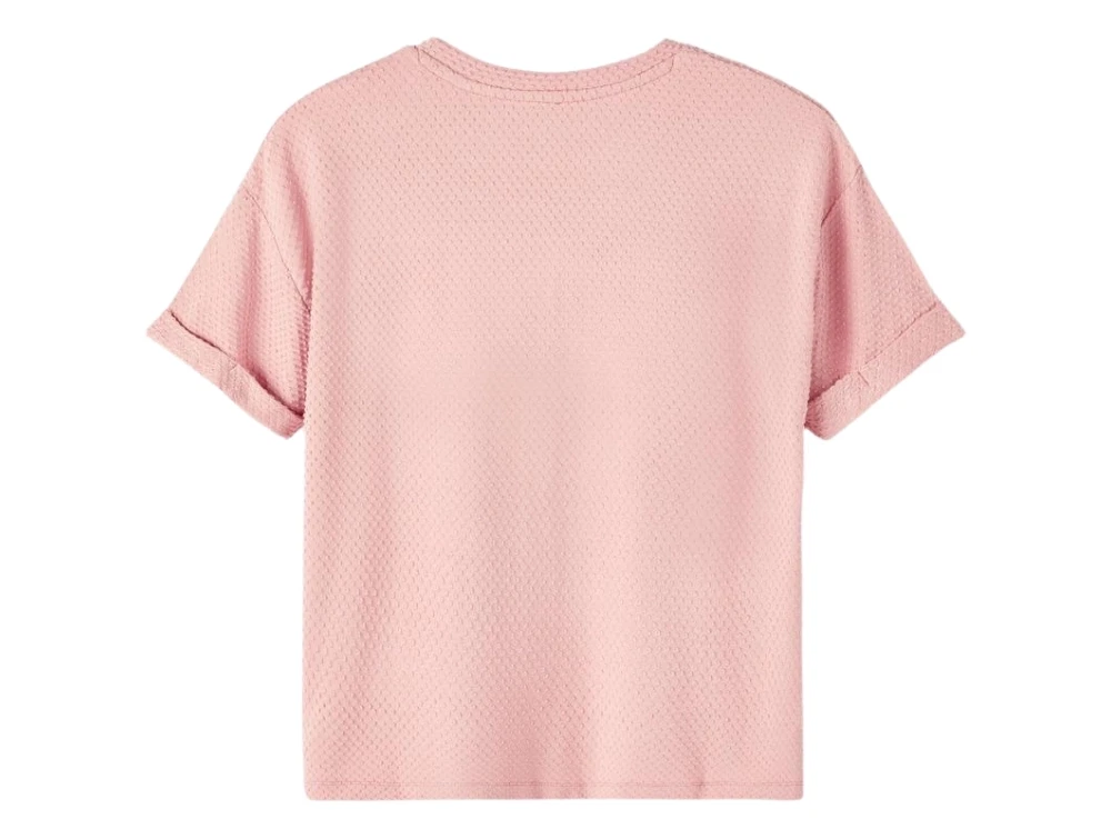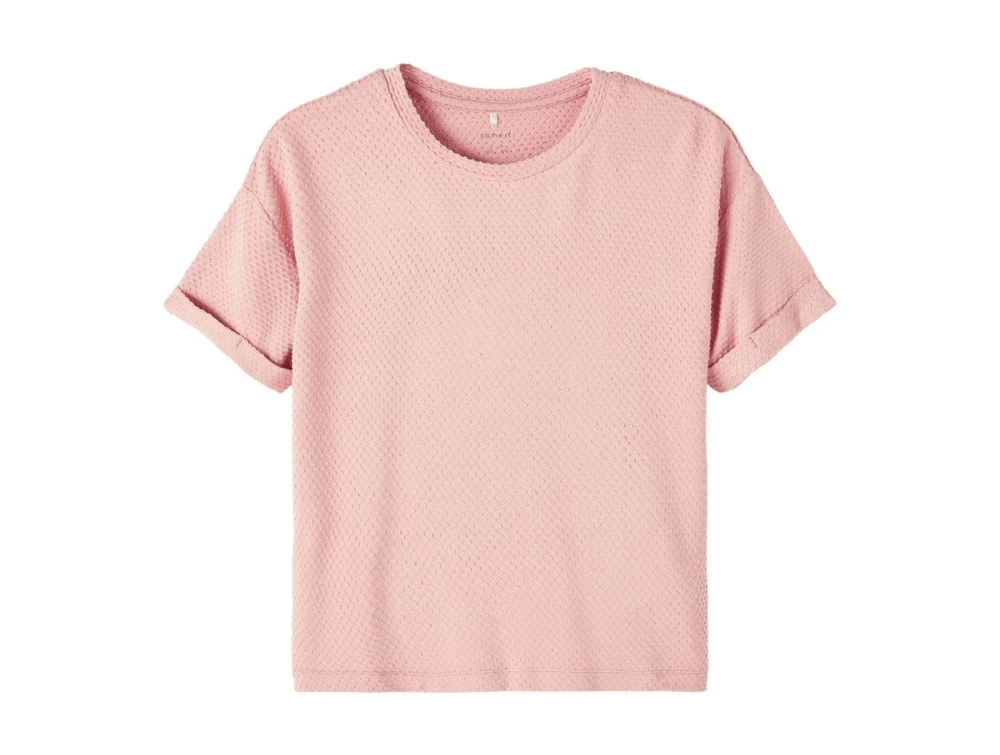 Top i farven rose tan med opsmøg på ærmer og struktur i materialet fra Name It.