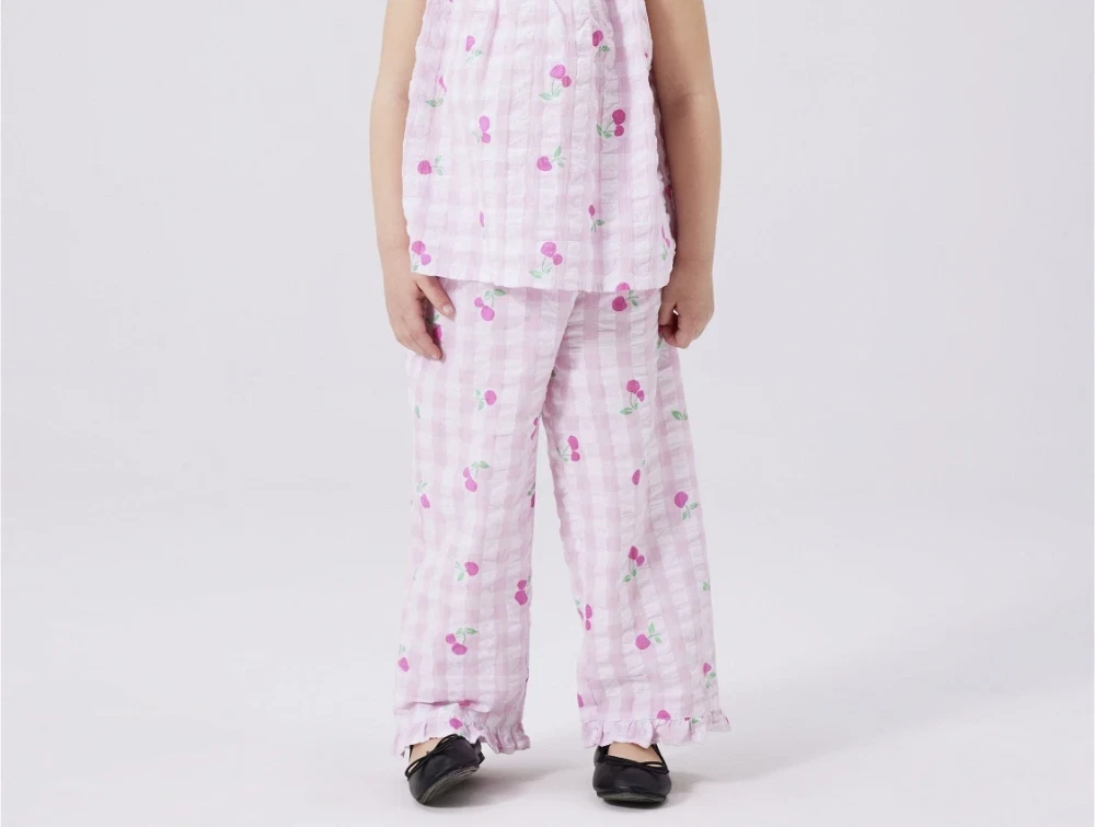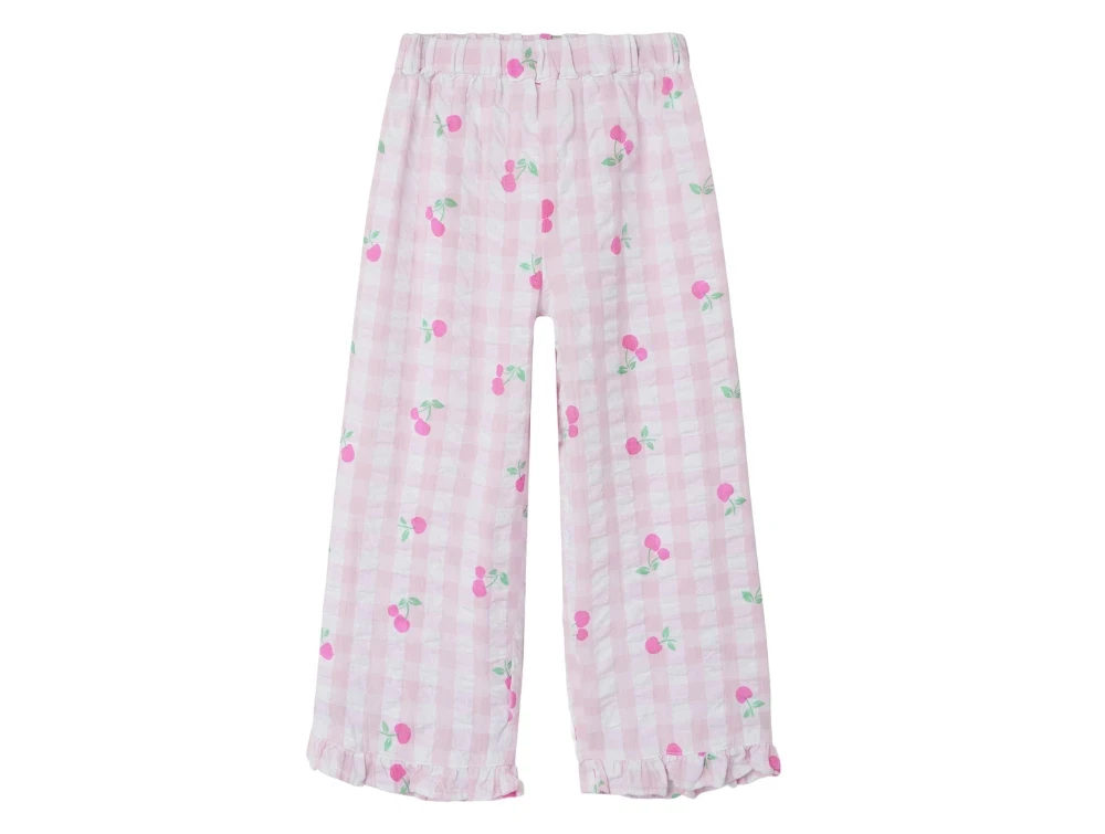 Bukser i farven rosebloom med kirsebærprint fra Name It.