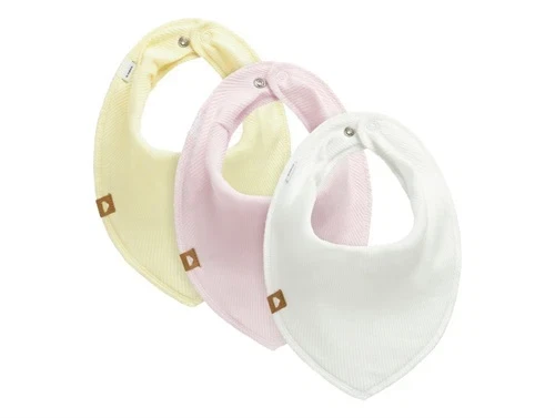 Bløde savlesmække i ribstrikket kvalitet med bagside i fleece, der hjælper med at holde barnets tøj tørt. Sættet består af tre smække i farverne gul, hvid og lyserød. Hver smæk lukkes med trykknapper i nakken og kan justeres i størrelsen for optimal pasform og komfort. En praktisk løsning med et dekorativt udtryk.