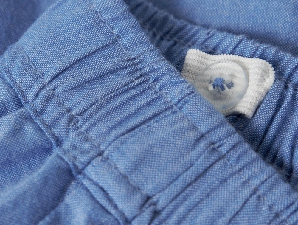 Materialet er lavet i 100% bomuld, som føles let og behageligt mod huden på varme dage. Den elastiske talje gør shortsene nemme at tage af og på, og den justerbare indvendige talje hjælper med at tilpasse pasformen.