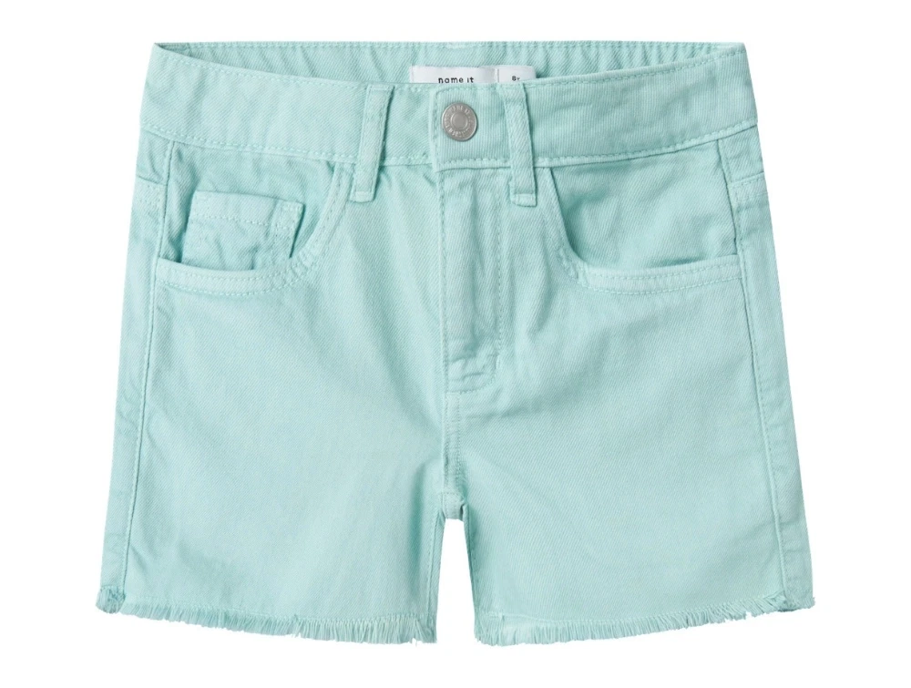 Mintgrønne shorts fra Name It i twillvævet bomuldsblanding med justerbar talje.