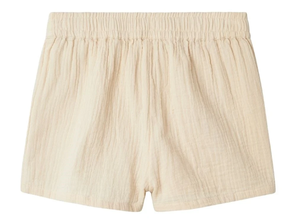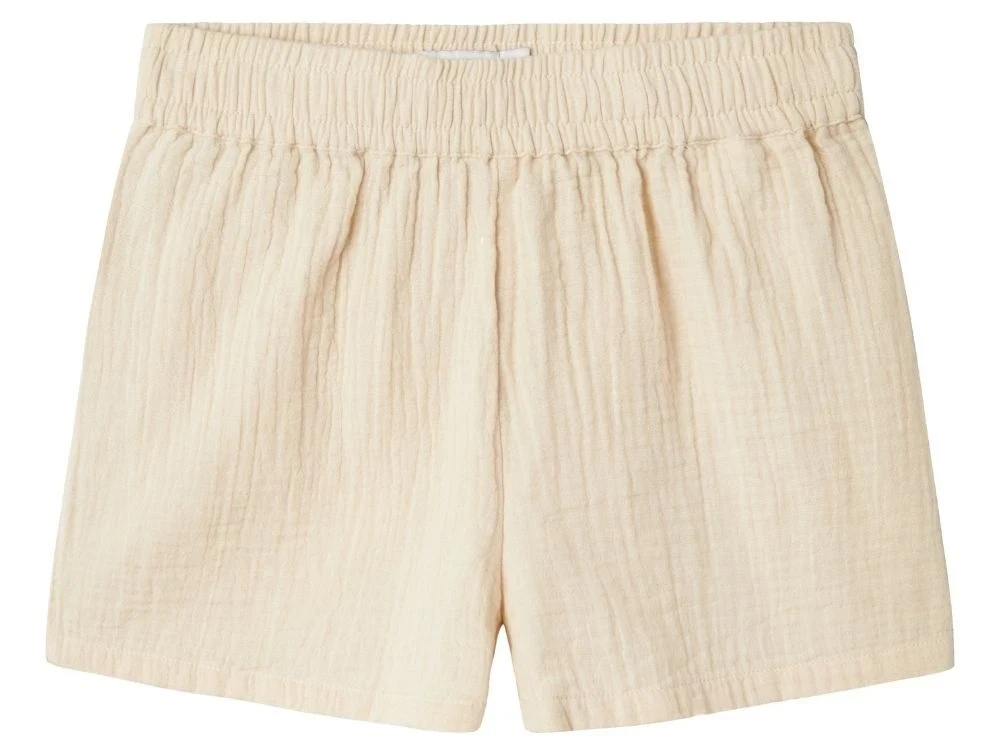 Beige shorts fra Name It i vævet bomuld med elastik i taljen og regulær pasform.