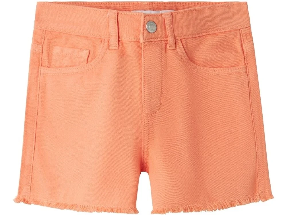 Orange shorts fra Name It i twillvævet bomuldsblanding med justerbar talje.