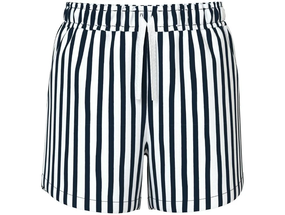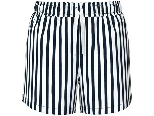 Klassiske shorts fra Name It i hvid med fine mørkeblå striber. Shortsene er lavet af blød og strækbar bomuldsjersey, der sikrer en behagelig pasform og god bevægelsesfrihed.