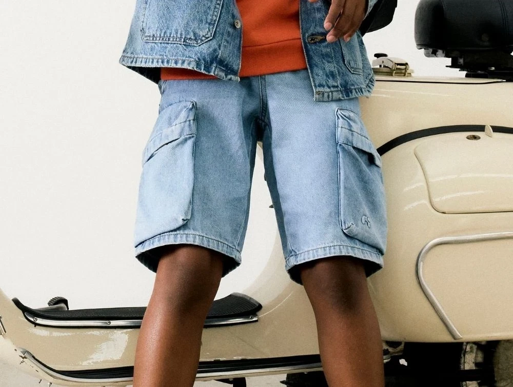Modellen har en baggy pasform, justerbar talje og lukkes med en bæltespænde. Derudover har den flere praktiske lommer – både foran, på siden og bagpå. En let slidt effekt giver et afslappet udtryk, perfekt til sommerens eventyr.