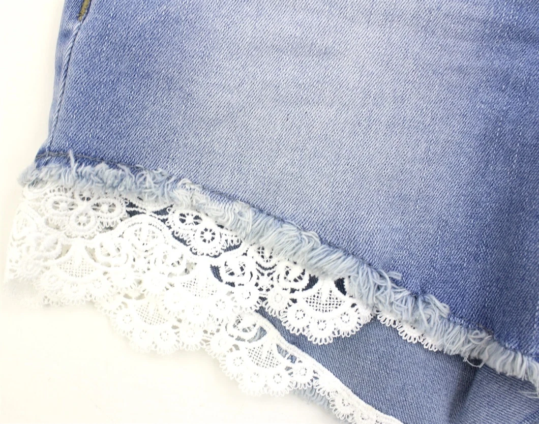 Denimshorts med hvide blonder i bukseben fra Name It.
