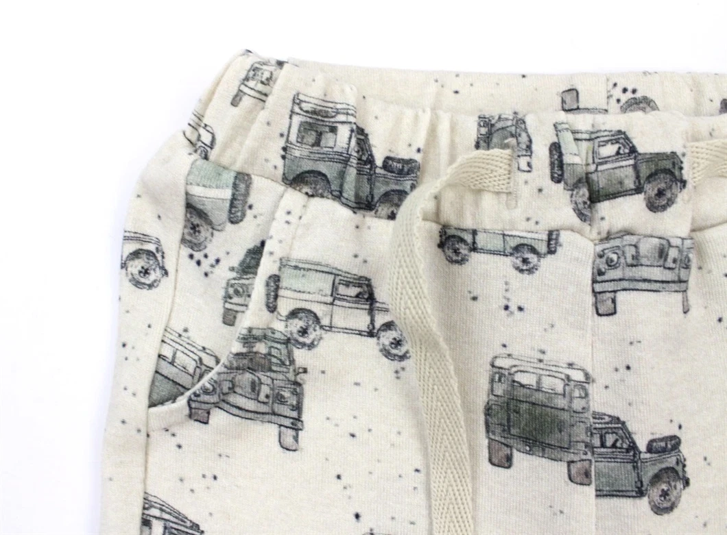 Korte shorts i farven peyote melange med bilprint fra Name It.