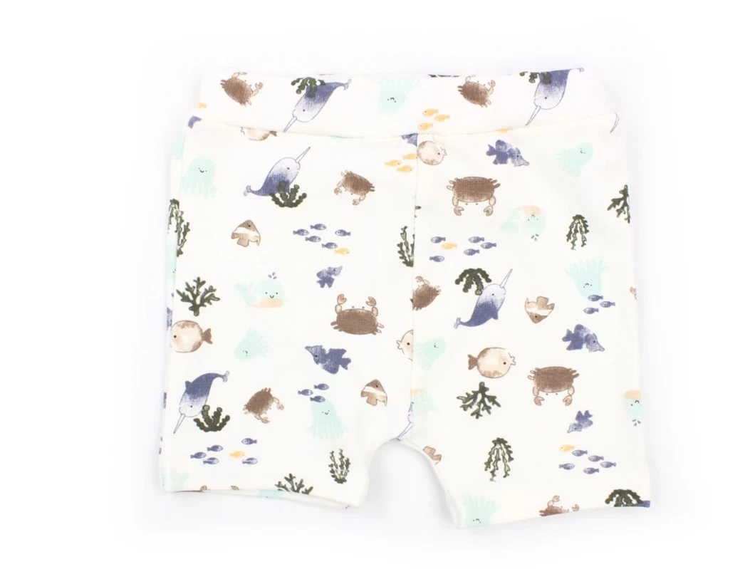 Korte shorts i farven white alyssum med havprint fra Name It.