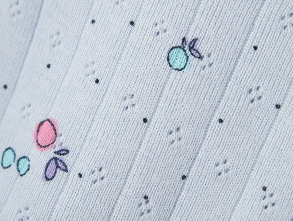 Shorts i lys blå nuance (xenon blue) fra Name It med et sødt frugtprint og hulmønster i stoffet.