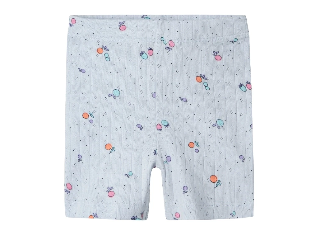 Name It shorts i lyseblå med frugtprint og elastik i taljen