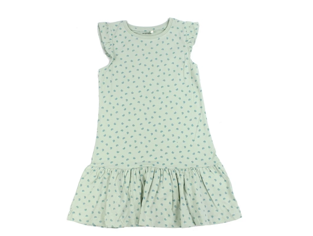 Sommerkjole i farven silt green med muslingeprint fra Name It.