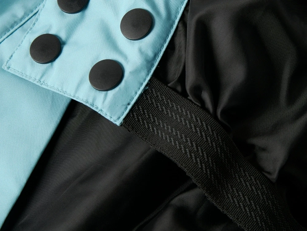 Jakken har et moderne farvespil i lilla og turkis, som giver et frisk og iøjnefaldende udtryk på pisten. Den er både vandafvisende, vindtæt og åndbar, hvilket gør den oplagt til ski og kolde vinterdage.