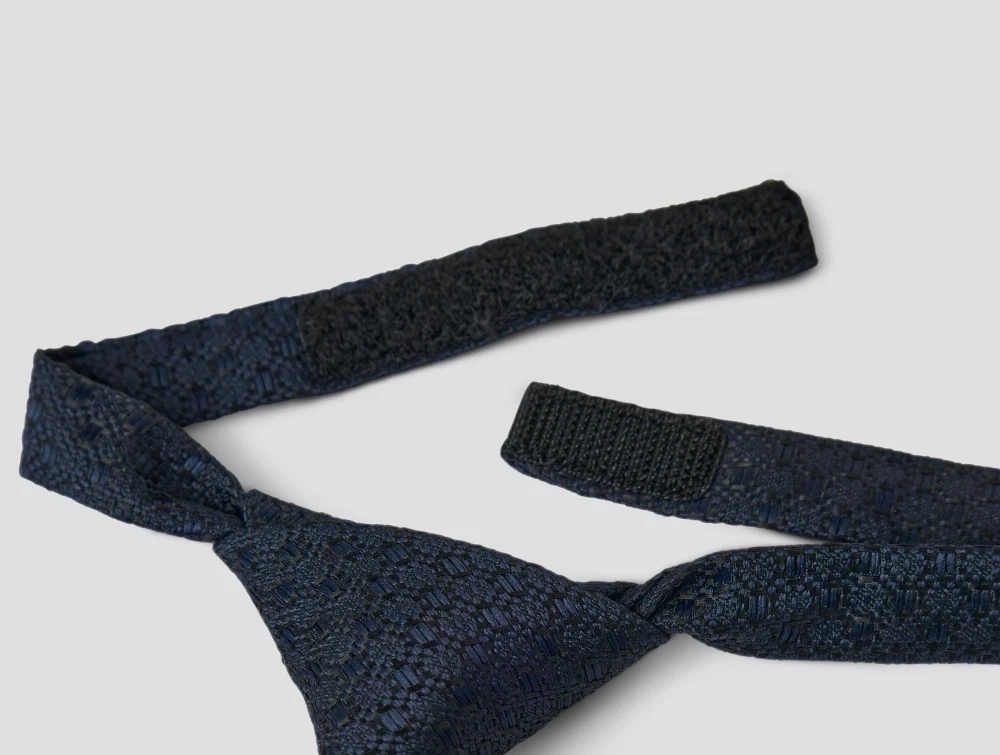 slips fra Name It i mørkeblå satin med velcrolukningNærbillede af slips fra Name It i mørkeblå satin med velcrolukningLukning på slips fra Name It i mørkeblå satin med velcrolukning