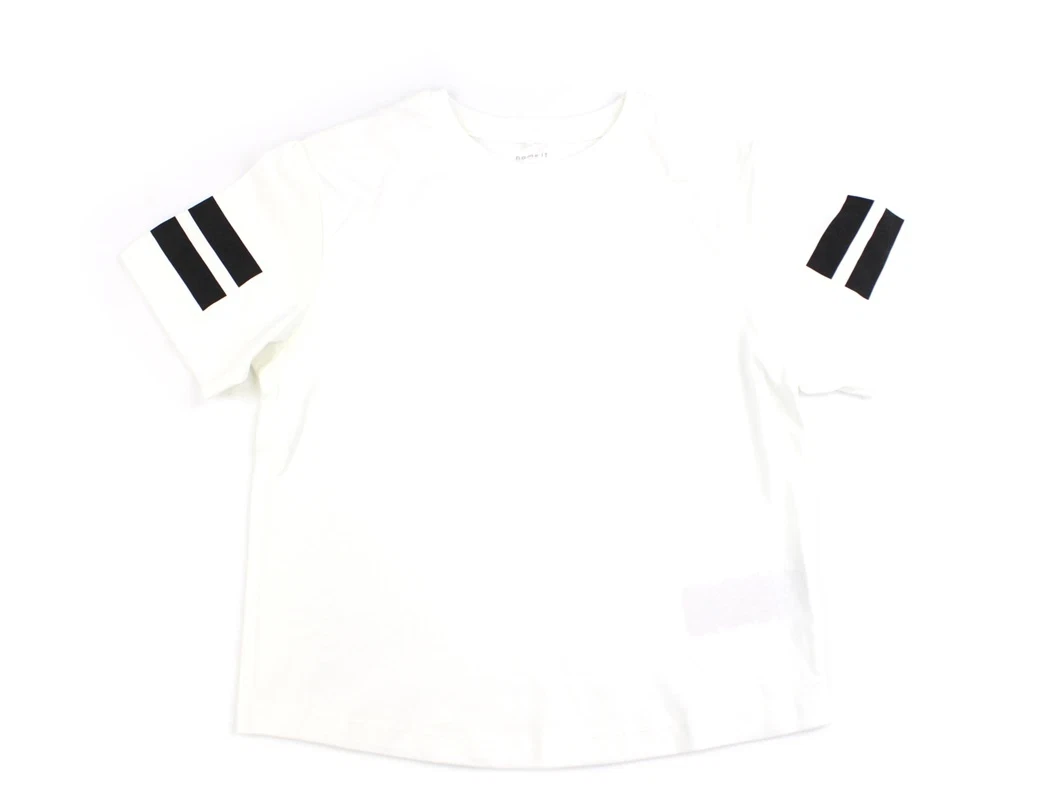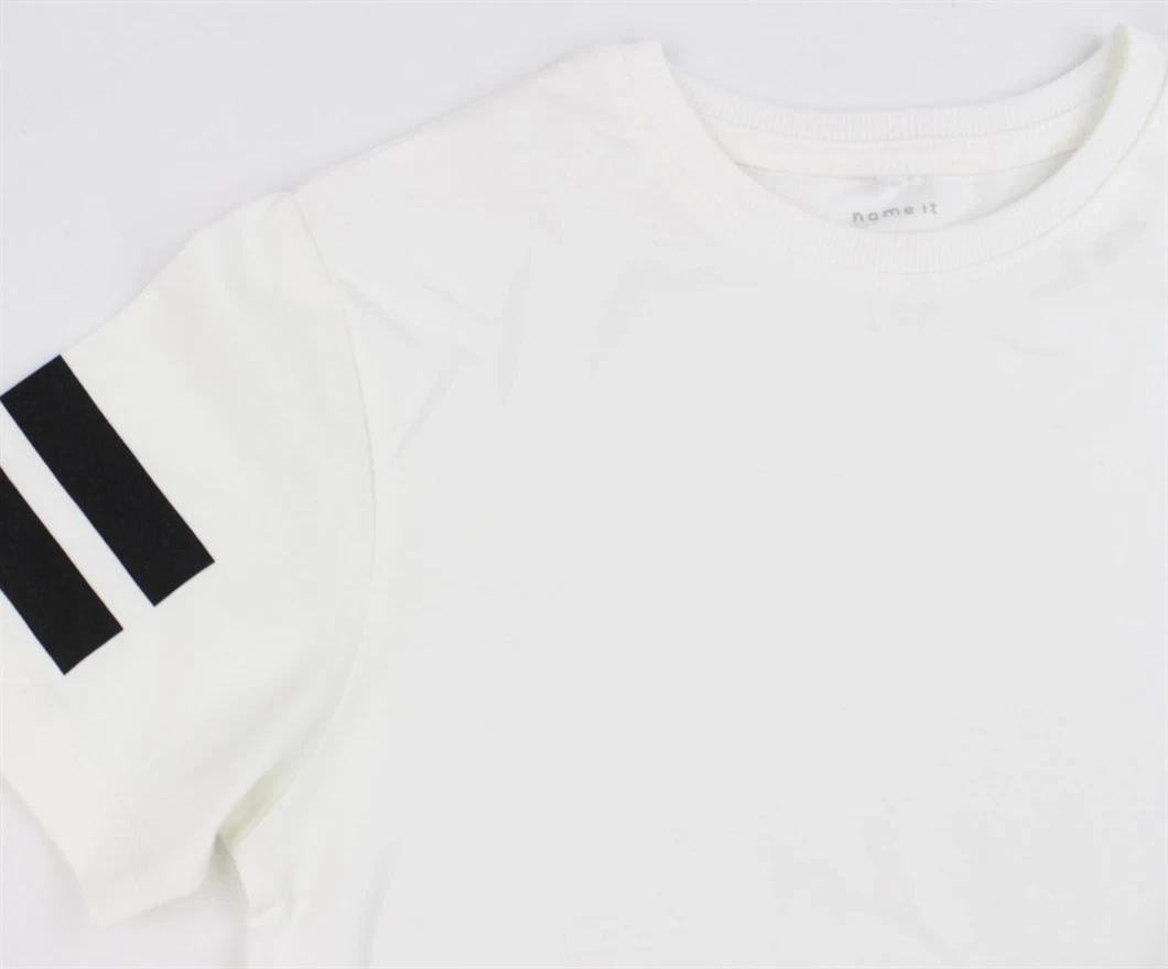 Cool t-shirt i farven snow white med sort print på ærmer fra Name It.