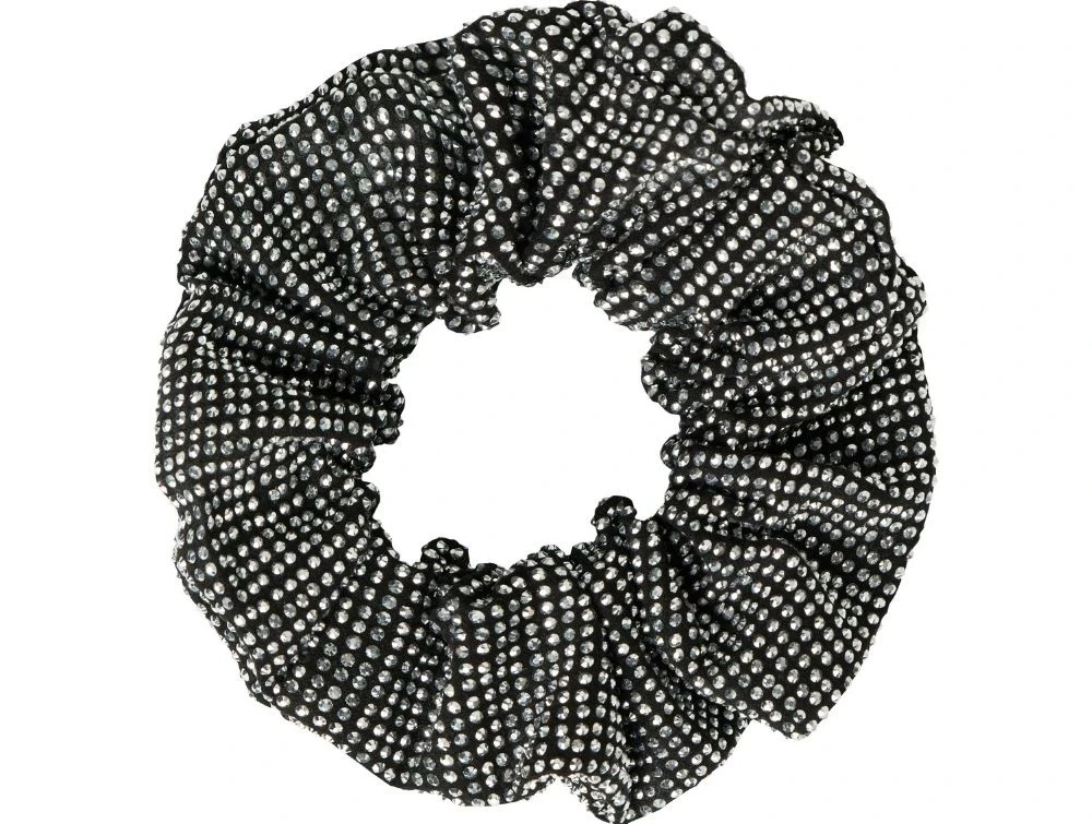 Tilføj det sidste festlige touch til dit barns outfit med denne glitrende scrunchie. Elastikken er både praktisk og dekorativ – perfekt til både hverdag og særlige lejligheder. Det vævede materiale har en let tekstur og et klassisk udtryk.