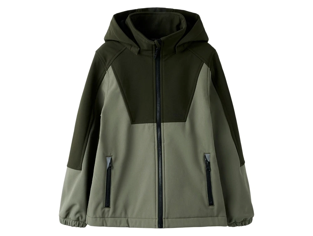Mere information om Name It softshell jakke dusty olive med aftagelig hætte