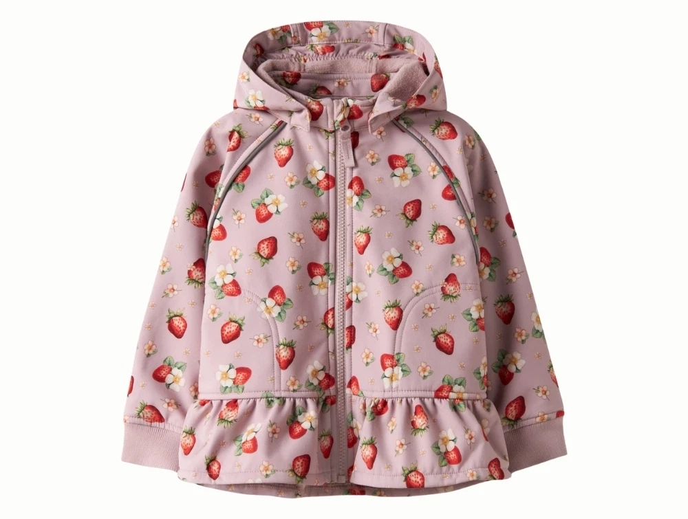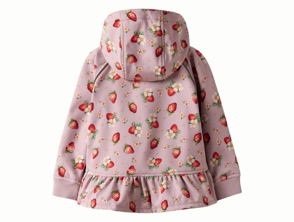 Name It softshelljakke i lyserød nuance med jordbærprint og hætte