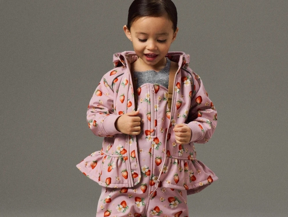 Name It softshelljakke i rosa nuance med jordbærprint på barnName It softshelljakke i rosa nuance med jordbærprintName It softshelljakke med fleecefor og lynlåsvagtName It softshelljakke med ribkant ved ærmerName It softshelljakke set bagfra i rosa nuance