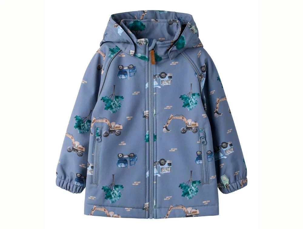 Name It softshelljakke i blå nuance med arbejdsbilprint og hætte