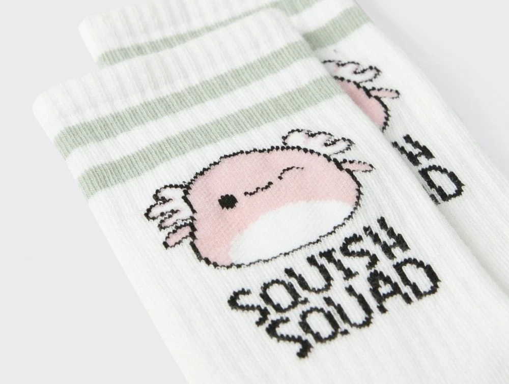 Name It sokker i hvid med Squishmallows figurer og striber, 2-pak