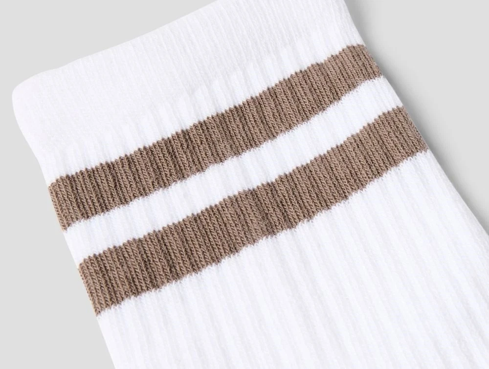 2-pak hvide ribstrikkede sokker fra Name It med to brune striber øverst – et sporty og klassisk valg til hverdagsbrug.