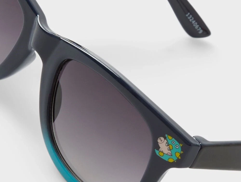 Sjove og praktiske solbriller i mørkeblå og turkis nuancer med Gurli Gris-motiv, der fuldender ethvert sommeroutfit. Solbrillerne har tonede glas med UV400-beskyttelse og en filterkategori CAT. 3, som giver beskyttelse mod solens stråler.