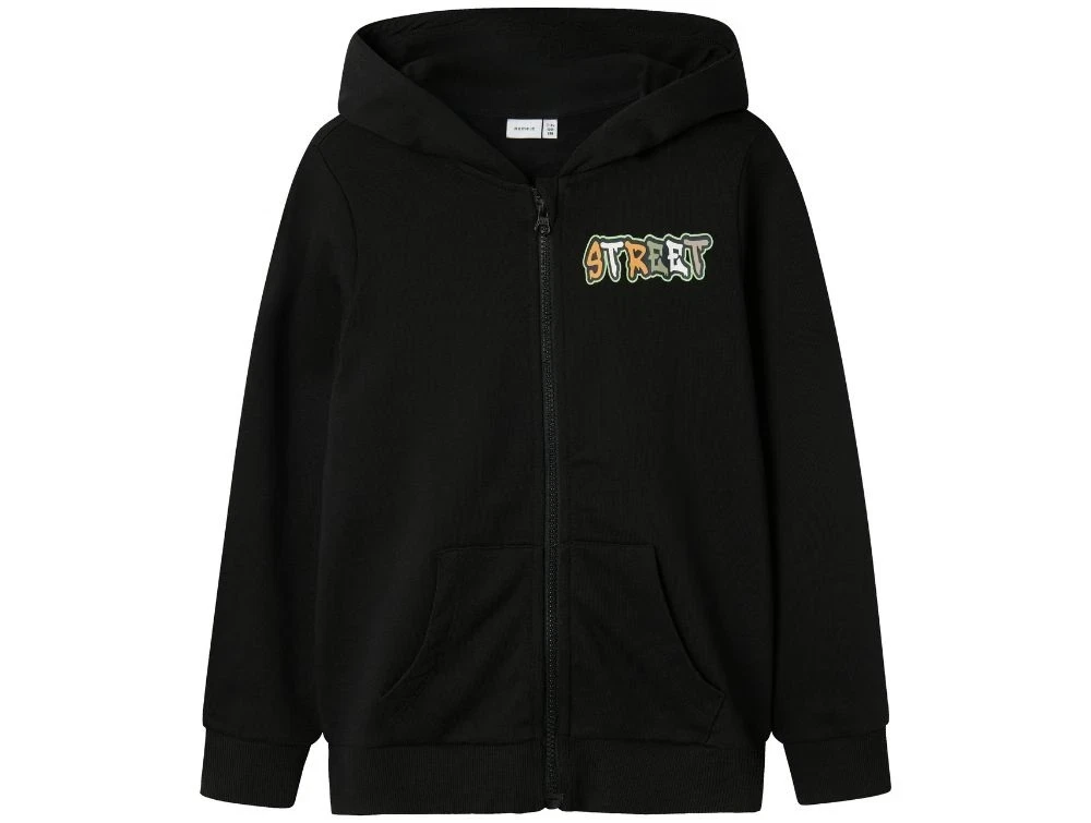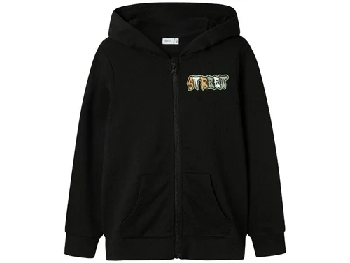 Name It sweatshirt cardigan sort med hætte og street print