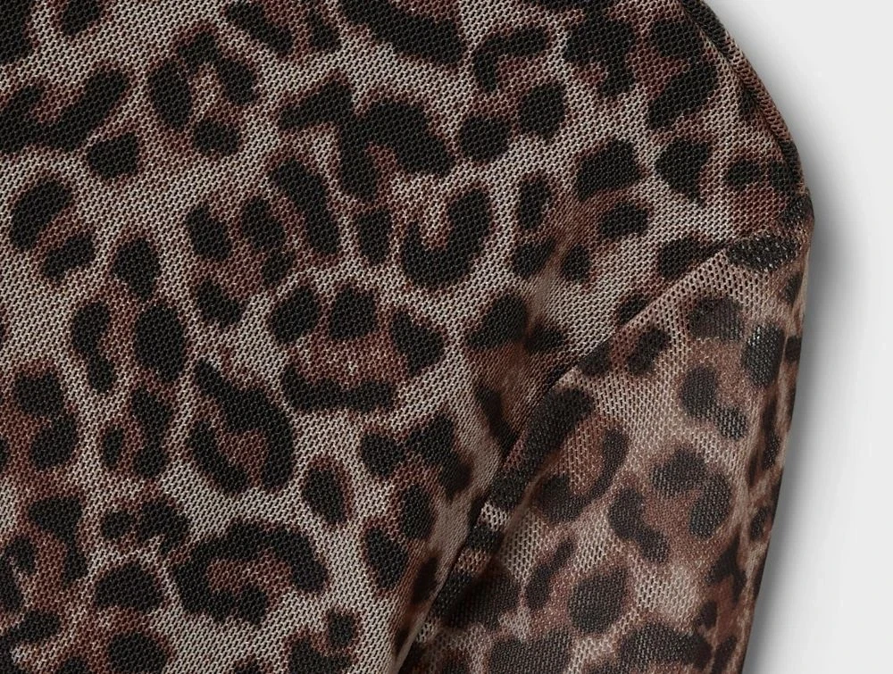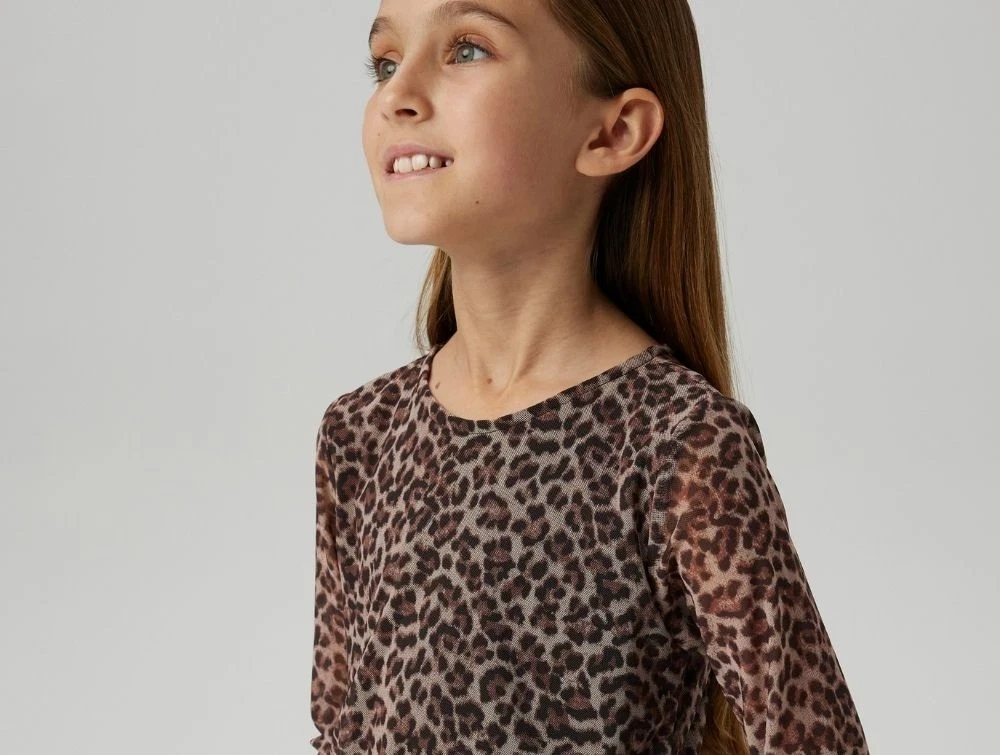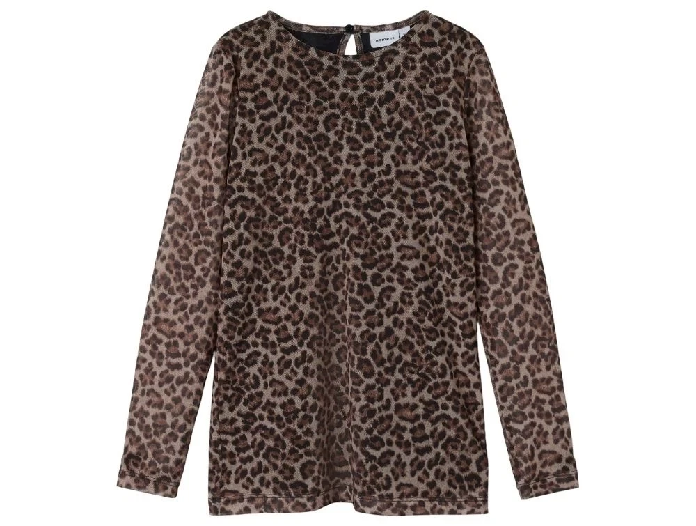 Sort langærmet top fra Name It med allover dyreprint i let meshkvalitet.