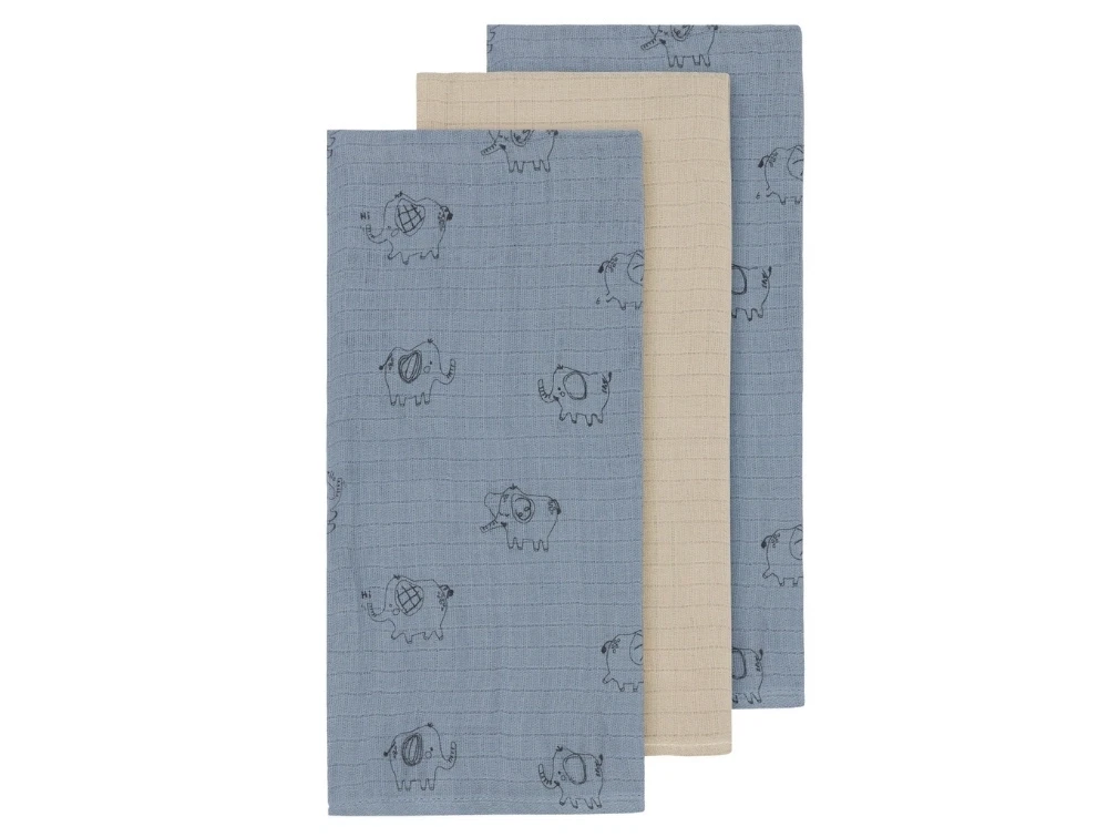 Name It stofbleer i blå og beige nuancer med elefantprint 3-pak
